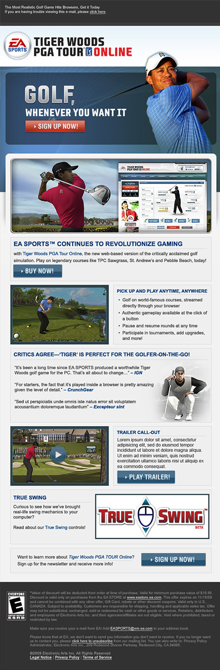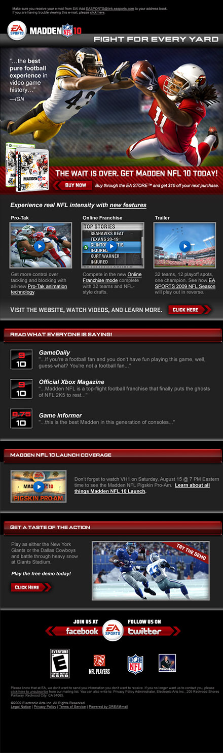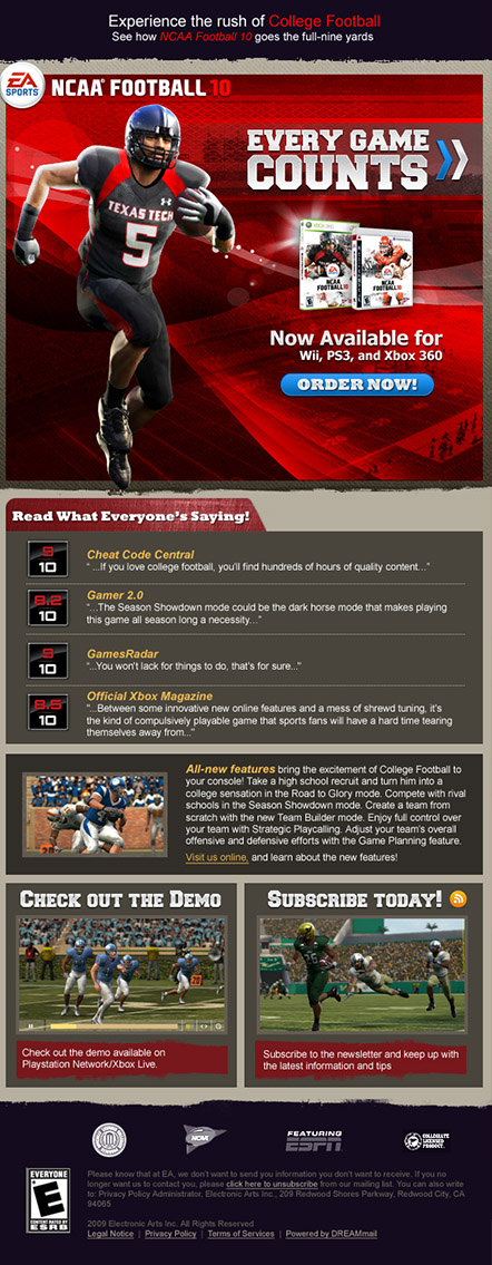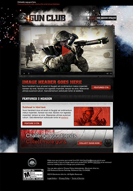 The goal of this project was to improve the digital mailer experience for EA Games. Creating new ideas based on each specific video game or EA sub brands truly was a wonderful experience. The brand itself has so many great graphics it was so hard figuring out which items we could highlight. Many screens used had to be pulled from the game itself as many new screens had yet to be released.